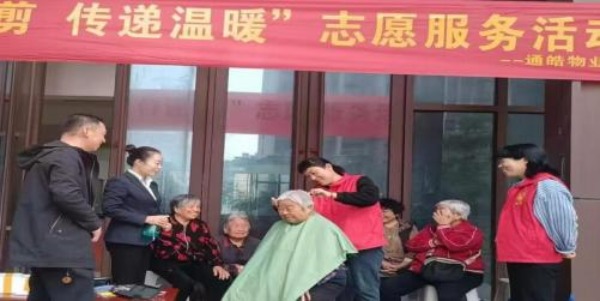 在一系列活動中,通皓物業(yè)特別設立了“助老便民服務 站” ,提供免費理發(fā)與血壓測量服務,踐行“老有所暖”服 務理念。